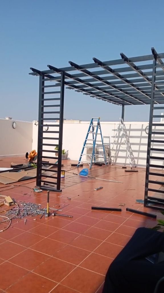 مظلات سيارات، مظلات حدائق، مظلات مسابح، مظلات مدارس، مظلات مداخل، وغيرها، بتصاميم عصرية وجودة عالية. - تركيب السواتر